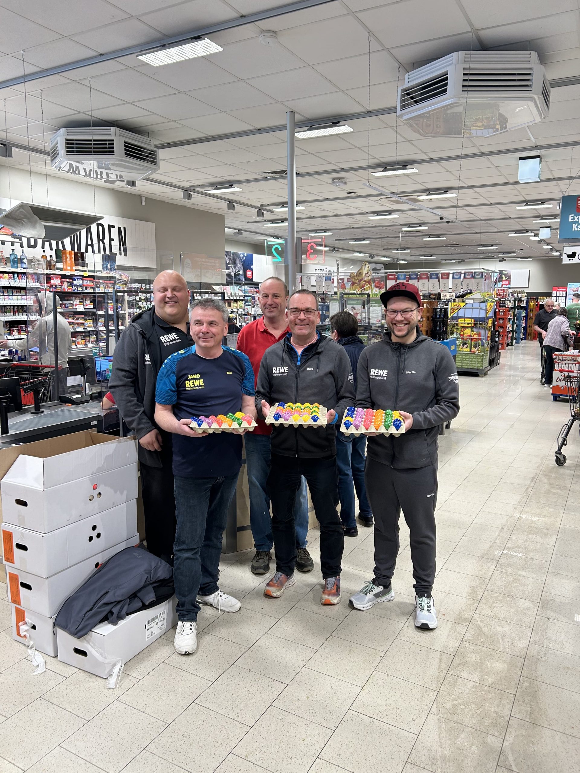 Der TTV Sulzfeld durfte an Karsamstag bei Rewe in Sulzfeld wieder bei der „Einpackaktion der Ostereier“ mitmachen. Ein Service für die Bevölkerung und ein Zuschuss für die Vereinskasse. Der TTV Sulzfeld bedankt sich bei Markus Ströhmann für das Sponsoring und die Kooperation.